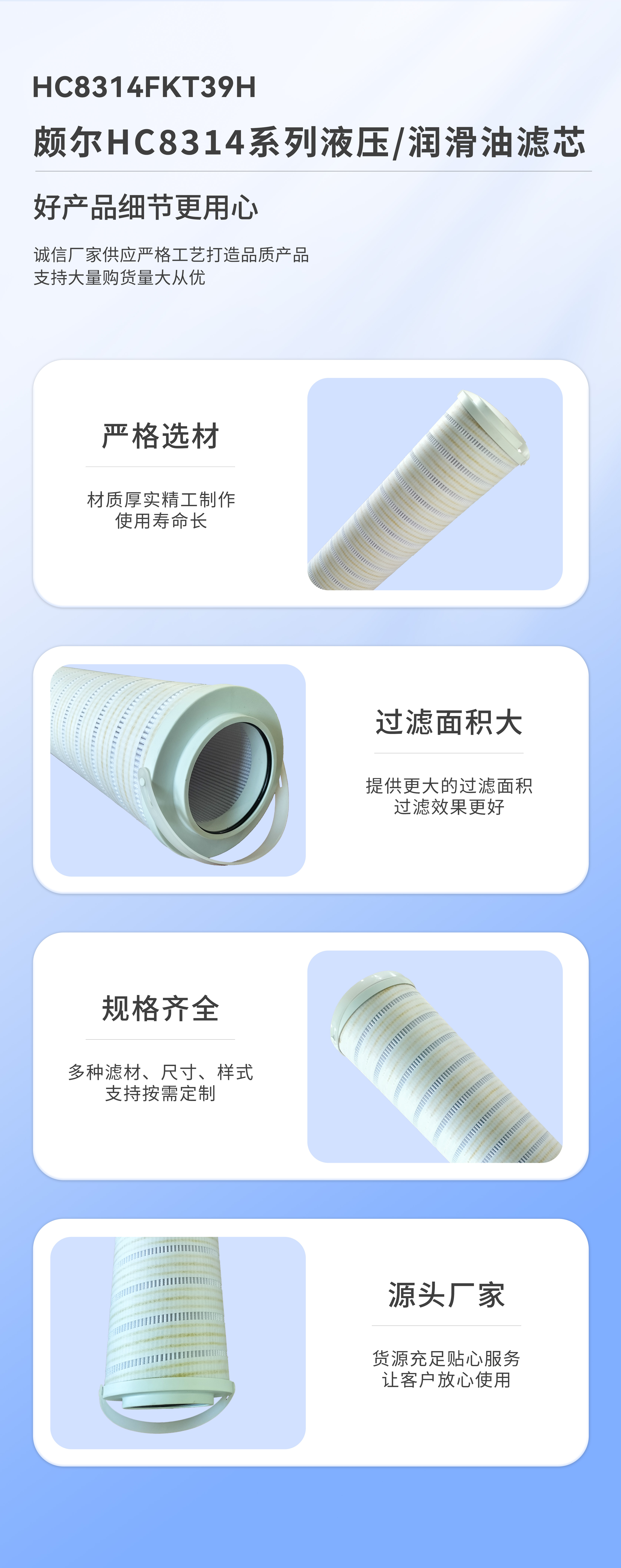 【產(chǎn)品簡介】:新鄉(xiāng)北方濾器供應頗爾HC系列液壓潤滑油濾芯。過濾精度:6微米,過濾比β ≥200,濾芯長度16英寸,密封圈材質(zhì):丁晴橡膠。