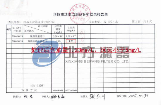 PS:本公司保證設(shè)備處理效果的真實(shí),熱忱歡迎新老客戶攜帶含油廢水樣液前來(lái)我司進(jìn)行油水分離機(jī)的現(xiàn)場(chǎng)試驗(yàn)。嚴(yán)禁同行不經(jīng)允許盜用本公司圖片,否則后果自負(fù)。